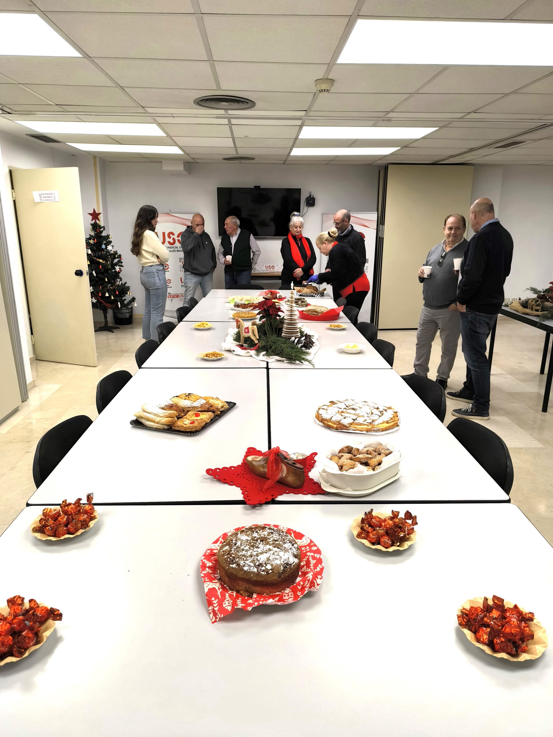 Hoy en USO-Illes Balears hemos querido reunirnos y celebrar juntos/as estas fechas tan señaladas, compartiendo una merienda en la sede del sindicato con nuestros/as delegados/as, responsables y trabajadores/as de los diferentes departamentos y áreas.